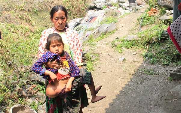 Cháu Ly Thị Lúa (SN 2006, trú tại bản Giàng Trù A, xã Du Già, huyện Yên Minh, Hà Giang) mang trên mình một khối u quái ác từ khi sinh ra.