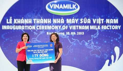 Tại lễ khánh thành, nhà máy sữa Việt Nam đã gửi tặng 150.000 hộp sữa đến 10 tỉnh có nhiều trẻ em dưới 5 tuổi suy dinh dưỡng. Sự có mặt của siêu nhà máy sữa bột vừa khánh thành và trước đó, vào tháng 4/2013, và siêu nhà máy sữa nước của Vinamilk cũng đã được khánh thành cho thấy chủ trương tăng sản lượng và đa dạng hóa sản phẩm của Vinamilk có chiến lược và rất tập trung.