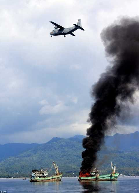 "Chúng tôi phải đánh chìm tàu cá nước ngoài để tàu cá khác phải suy nghĩ kỹ trước khi đánh bắt trộm trong lãnh thổ của chúng tôi", phát ngôn viên hải quân Indonesia Commodore Manahan Simorangki nói.