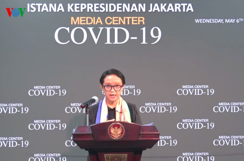Cuộc họp trực tuyến giữa Ngoại trưởng Indonesia, bà Retno Marsudi và Ngoại trưởng Trung Quốc, Vương Nghị. (Ảnh: Bộ Ngoại giao Indonesia)