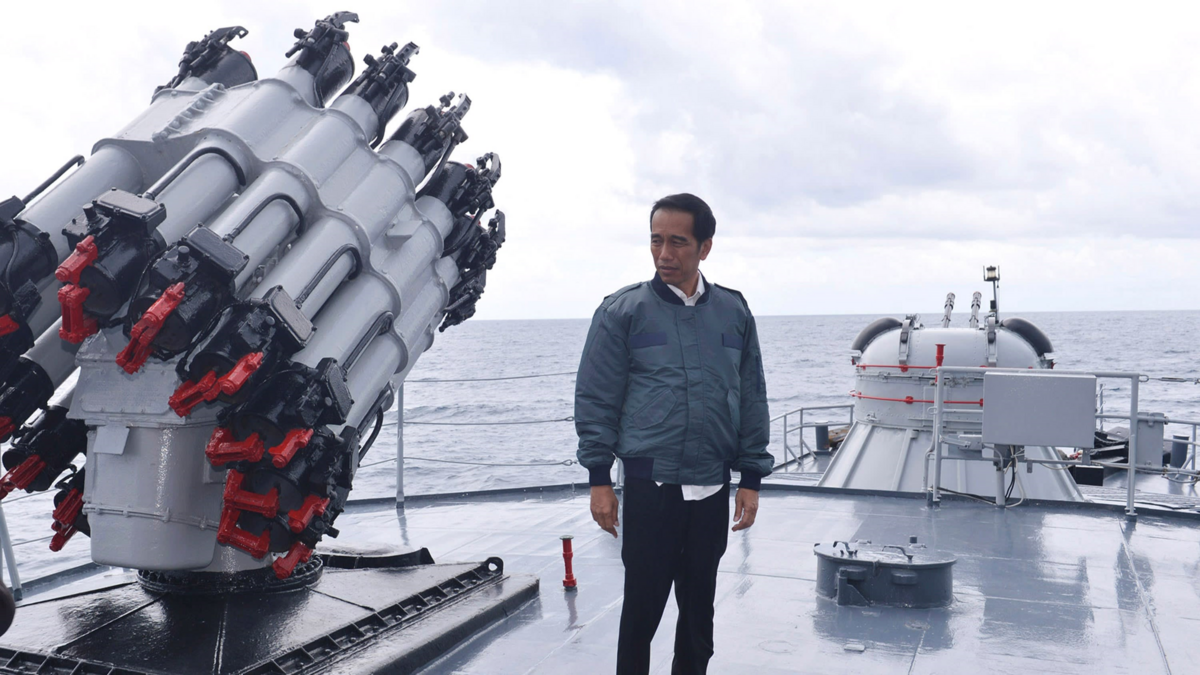 Tổng thống Indonesia Joko Widodo thị sát một tàu chiến của nước này. (Ảnh: Reuters)