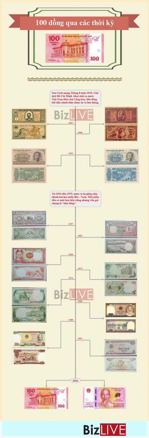 Nhân dịp này, mời bạn đọc hãy cùng BizLIVE chiêm ngưỡng lại những tờ tiền mang mệnh giá 100 đồng đã từng xuất hiện trong lịch sử tiền tệ của nước ta.