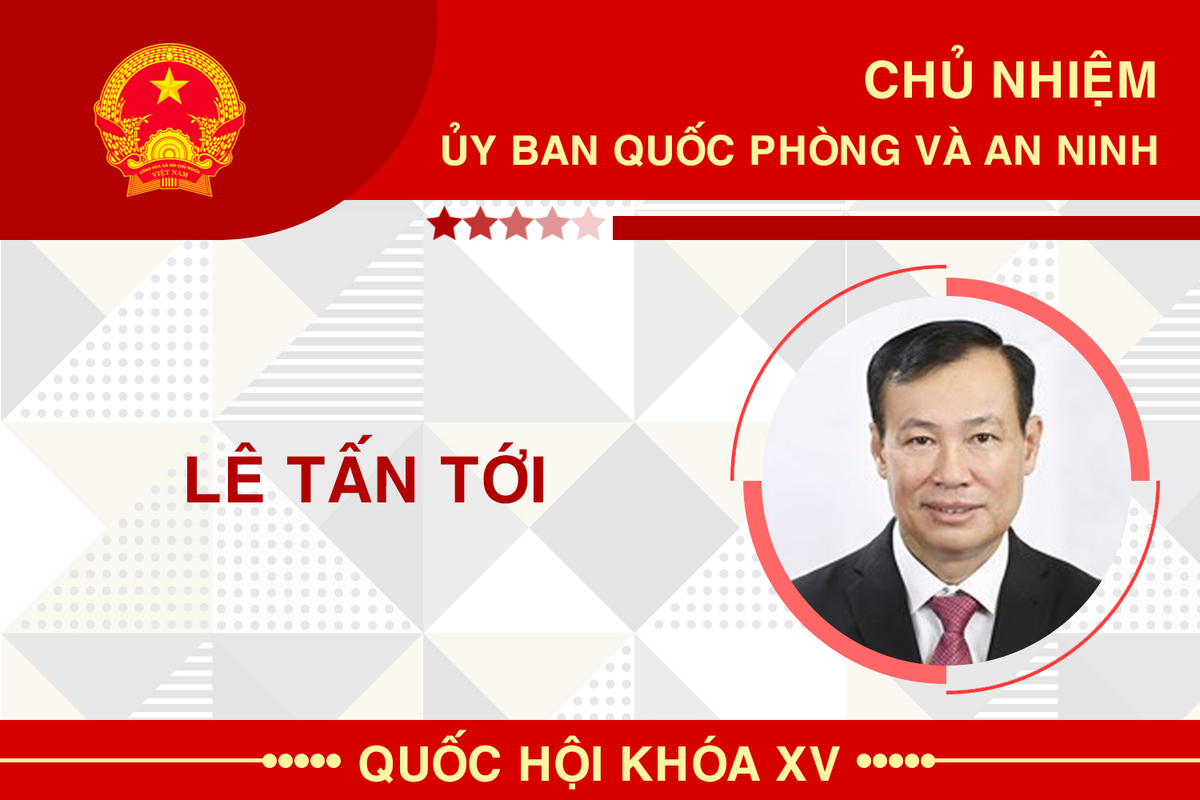 (VTC News) - Tại kỳ họp thứ nhất Quốc hội khóa XV, ông Lê Tấn Tới được bầu vào Ủy ban Thường vụ Quốc hội, giữ chức Chủ nhiệm Ủy ban Quốc phòng và An ninh.