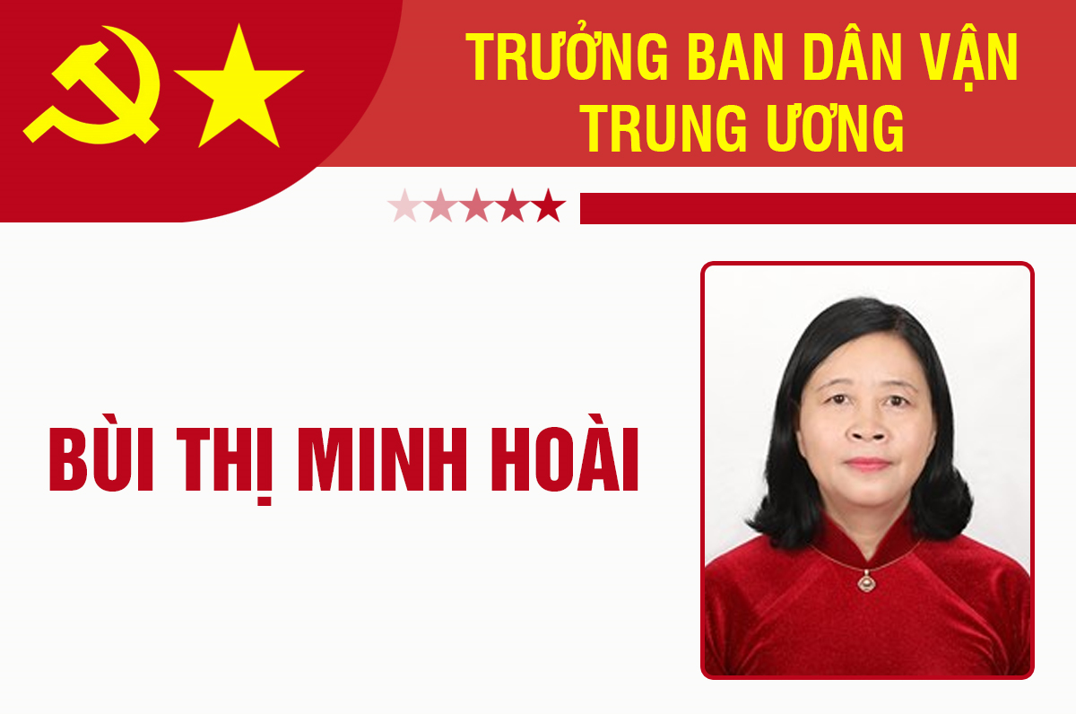Bà Bùi Thị Minh Hoài, Bí thư Trung ương Đảng, Phó Chủ nhiệm Ủy ban Kiểm tra Trung ương được Bộ Chính trị phân công giữ chức Trưởng Ban Dân vận Trung ương.