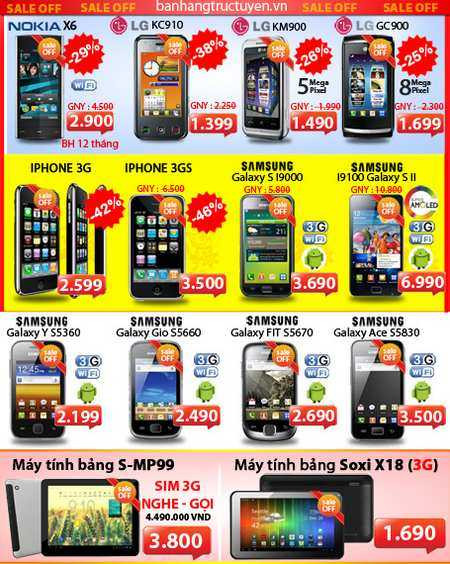 (VTC News) - Chương trình khuyến mãi giảm giá dịp lễ Noel nhiều sản phẩm điện thoại. Mức giảm lên tới 45% dành cho khách hàng mua iPhone 3Gs và các sản phẩm điện thoại cao cấp chính hãng như Nokia, SamSung, LG… tại công ty Bán hàng trực tuyến đang thu hút được sự quan tâm của khách hàng.