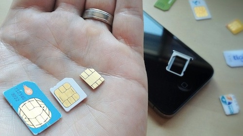 | iPhone 5 dùng nano-Sim, kích thước nhỏ hơn 44% so với micro-Sim, không tương thích với các loại sim hiện tại do nhà mạng Việt Nam phát hành. |