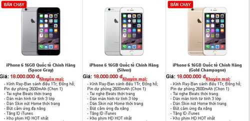 | Một vài cửa hàng đã niêm yết giá 18 triệu đồng cho iPhone 6 |