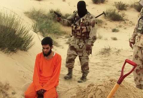 Đoạn video chỉnh sửa kỹ lưỡng được cho là quay ở tỉnh Sinai, Ai Cập cho thấy một người đàn ông, râu quai nón, mặc bộ trang phục màu da cam cầm xẻng đào hố chôn xác mình trước khi bị chiến binh IS hành quyết bằng một phát đạn sau đầu.