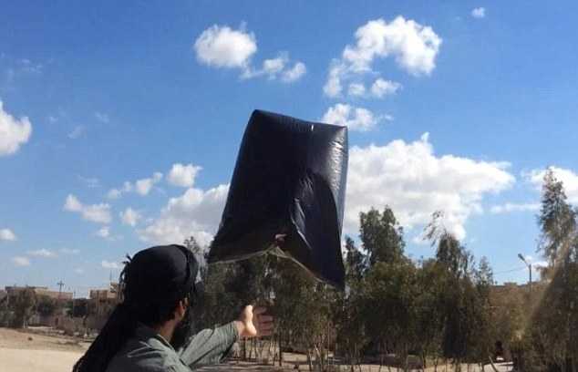Một chiến binh IS thử nghiệm quả 'bom bay' làm từ túi ni lông
