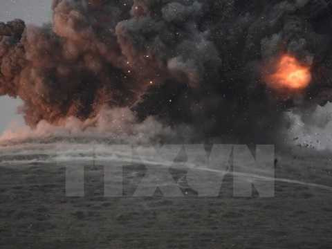 | Vụ không kích nhằm vào mục tiêu của IS trên đồi Tilsehir, gần biên giới Thổ Nhĩ Kỳ ở làng Yumurtalik, tỉnh Sanliurfa, ngày 23/10. |