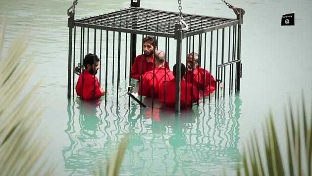 Các chiến binh Nhà nước Hồi giáo ở Iraq đã sát hại dã man 5 tù nhân bằng cách nhốt họ trong chiếc lồng sắt và thả xuống hồ bơi.