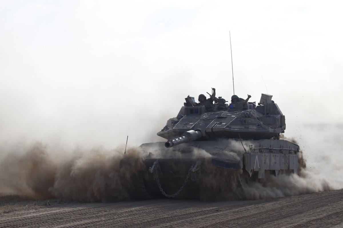 Xe quân sự Israel di chuyển gần biên giới với Dải Gaza ngày 29/5/2024. (Ảnh: THX/TTXVN)