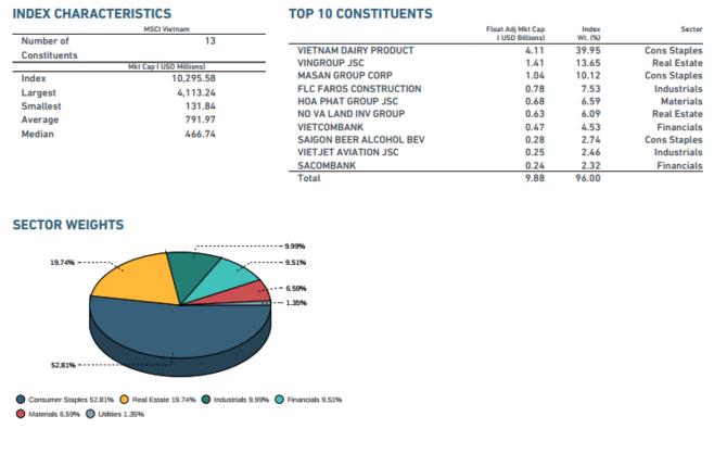 Qua đó, bên cạnh các mã VIC, MSN, VCB, HPG, STB, GAS, BVH, BID, VNM, quỹ MSCI Frontier Markets Index ETF đã nâng số cổ phiếu của Việt Nam trong danh mục lên con số 13.