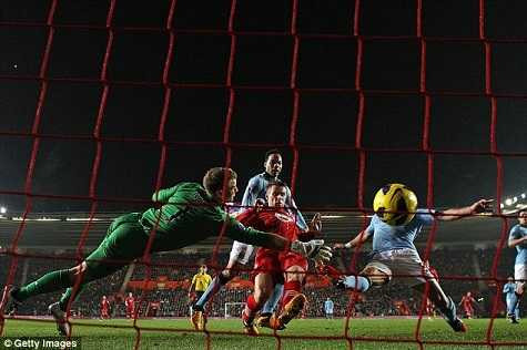 Ở phút bù giờ thứ 4 của trận đấu, đón đường tạt bóng của đồng đội, Andy Carrol khống chế gọn ghẽ và tung ra cú dứt điểm ở cự li 12m, cú sút dù đi đúng ngay vào vị trí của Hart nhưng sau đó thủ thành của Man City vẫn phải nhoài người cứu bóng... sau vạch vôi.
