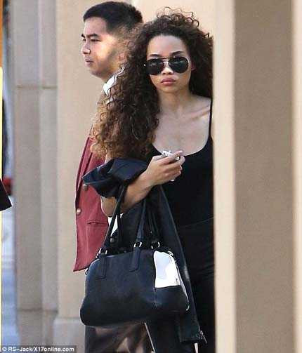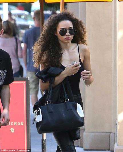 Ashley Moore diện một bộ đen với quần da bó và chiếc áo 2 dây trễ nải cùng mái tóc xoăn xù buông xõa rất ấn tượng. Cô nàng ngụy trang với chiếc kính đen và cắm cúi bước đi, hai người đã có buổi ăn trưa không như mong đợi khi báo giới nhanh chóng xuất hiện.