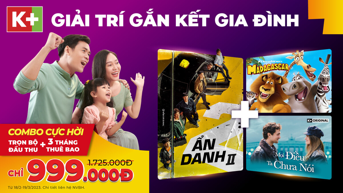 Nổi bật là chùm phim độc quyền và duy nhất trên K+ như series "Mọi điều ta chưa nói", được chuyển thể từ tiểu thuyết cùng tên của nhà văn Marc Levy, đang phát sóng vào 20h Thứ 2 hàng tuần; "Ẩn danh 2" (Taxi Driver 2) - siêu phẩm Hàn đáng chú ý nhất năm nay, đang phát sóng vào 23h10 Thứ 6, 7 hàng tuần, song song với lịch chiếu Hàn Quốc; "Delivery Man" - series Hàn mới toanh cũng sẽ lên sóng từ 1/3.