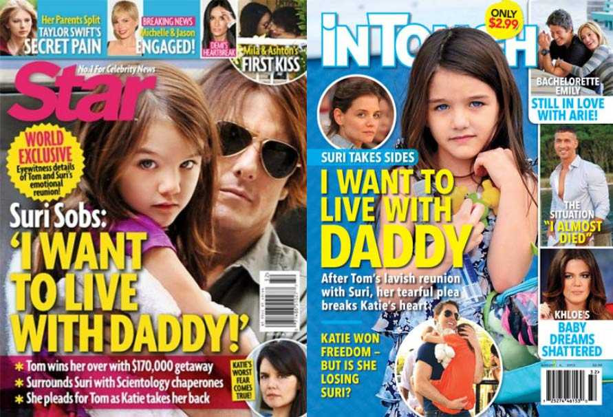 Katie Holmes thực sự muốn dạy dỗ Suri đúng nhất như các bà mẹ khác, để cô bé được uốn nắn như cây non thay vì ý muốn dạy con như ông chồng Tom Cruise. Nhưng chính vì sự nghiêm khắc đó mà bà mẹ này đã làm cô con gái vốn được nuông chiều trở nên rầu rĩ. Trong khi đó, ông bố nổi tiếng lại hết mực chiều chuộng con, có vẻ như đó là sự "mua chuộc" tình cảm khôn ngoan nhất.