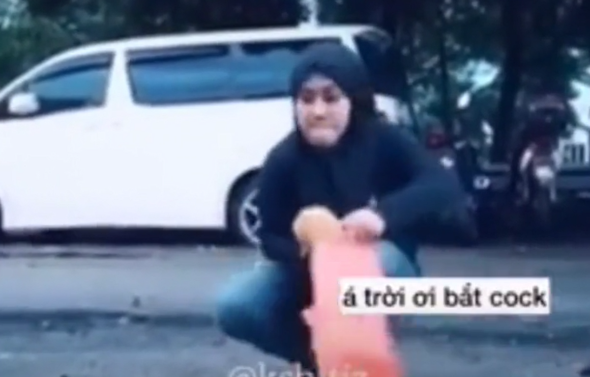 Người phụ nữ rón rén tóm con mèo, cẩn thận cho vào cái túi rồi lấm lét rút nhanh lên ô tô, không hề biết cái túi bị thủng.