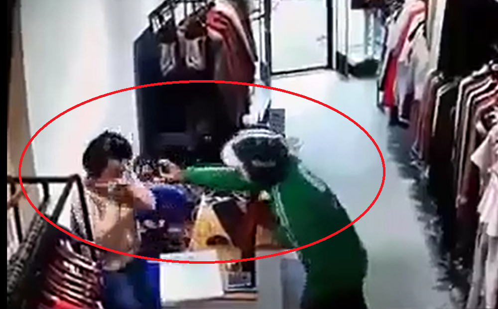 Một nam thanh niên mặc đồng phục có logo Grab, bịt kín mặt vào cửa hàng quần áo xịt thuốc mê nhân viên, sau đó cướp tài sản rồi bỏ trốn.