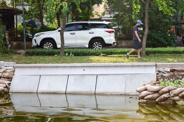 Quận Hoàn Kiếm (Hà Nội) đang xin ý kiến việc thay thế bờ kè bị sạt lở nghiêm trọng bằng bê tông đúc sẵn, tuy nhiên việc này đang gây tranh cãi về tính khả thi.