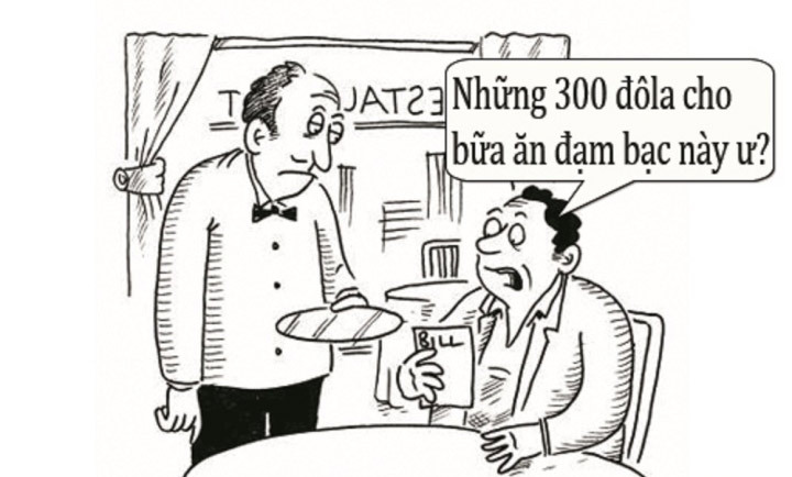 - Những 300 USD cho bữa ăn đạm bạc này ư? Này anh bạn, hãy nể tình đồng nghiệp mà giảm bớt tiền cho tôi chứ?