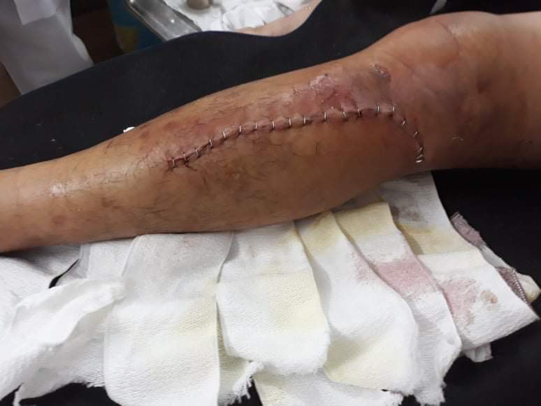 Sau khi đến bệnh viện, anh Huy được các bác sĩ xác định đa chấn thương, gãy xương chân nặng phải phẫu thuật nối xương. Công an TP Dĩ An sau đó đưa anh Huy giám định thương tích vơi tỷ lệ 17%, đồng thời lấy lời khai và báo sau 2 tháng sẽ trả lời.
