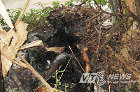 | Bụi chuối nơi phát hiện thi thể người phụ nữ bị đốt |