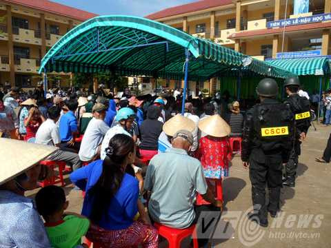Phiên tòa xử lưu động, công khai tại Trường Tiểu học Tân Hiệp trước đông đảo người dân chứng kiến. Nhiều lực lượng cơ quan công an, CSCĐ, bảo vệ dân phố cùng đông đảo cơ quan truyền thông báo chí đưa tin.