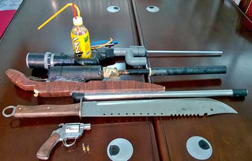Khám xét nơi ở của tên Hà, cơ quan CSĐT Công an huyện Hải Hà thu được 1 khẩu súng côn xoay tự chế, 2 viên đạn và một vỏ đạn đang nằm trong ổ xoay tiếp đạn; 2 súng cồn bắn bi; 2 quả chất dẻo và 2 kíp nổ (đối tượng Hà khai nhận là mìn tự chế); 1 thanh đao dài khoảng 0,7m và một số dụng cụ dùng để sử dụng ma túy tổng hợp dạng đá.