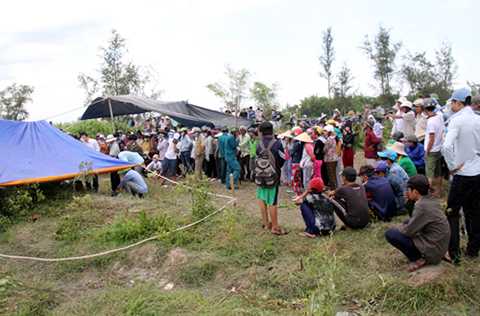 | Hàng trăm người dân vây kín xem khám khiệm hiện trường nhưng Phúc vẫn thản nhiên đánh bida gần đó nên bị cảnh sát để ý. Ảnh. Tiến Hùng. |