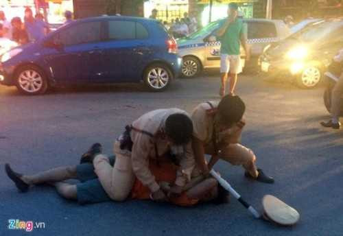 | CSGT vật lộn với tài xế say xỉn (Ảnh: Zing) |