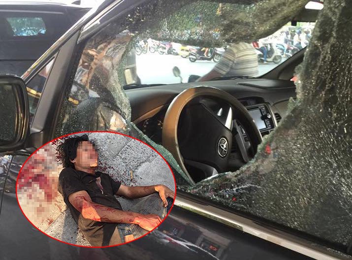 Chiếc ô tô mang Innova BKS 30A – 440.56 đang di chuyển trên đường bị một đối tượng lạ mặt tiến đến, cầm gạch đá đập vỡ cửa kính, tài xế sau đó xuống ngăn cản cũng bị kẻ này đánh vào đầu.