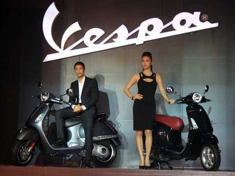 Cặp đôi nổi tiếng Johnny Trí Nguyễn và Ngô Thanh Vân cùng xuất hiện bên mẫu Vespa Primavera mới. Ảnh Khánh Hòa