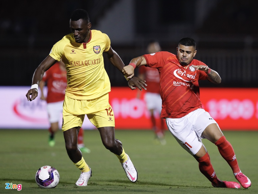 Kelly Kester (áo vàng) rời sân khi CLB Hà Tĩnh đang chơi lấn lướt đội chủ nhà TP.HCM. Ảnh: Duy Anh.