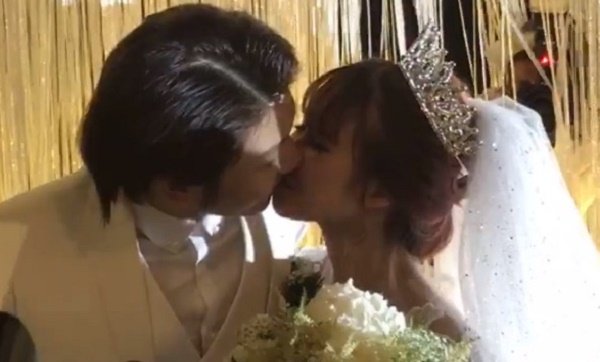 Khởi My - Kelvin Khánh hôn nhau trong tiệc cưới.