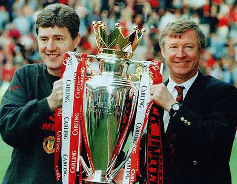 | Sir Alex và trợ lý Brian Kidd ăn mừng chức vô địch mùa 1995-96 |