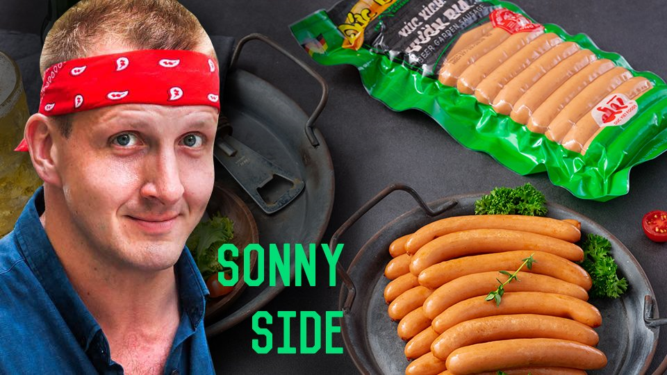 Youtuber Sonny Side so sánh với hình ảnh một xưởng sản xuất xúc xích khá nổi tiếng tại nước Mỹ. (Ảnh cắt từ clip)