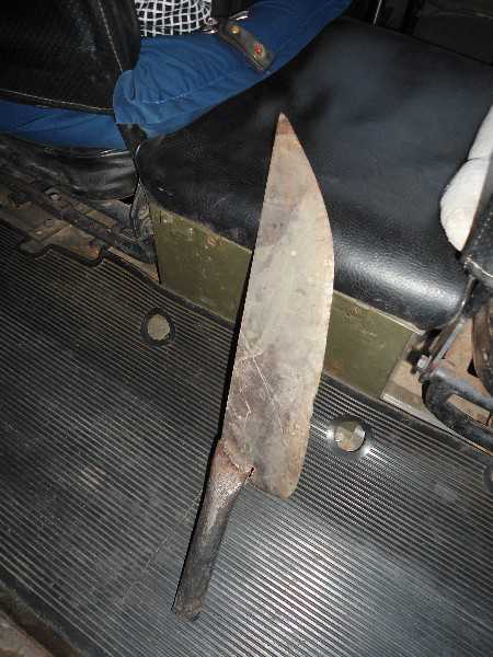 | Con dao sắt thu giữ được trên xe mô tô của 3 thanh niên trên |