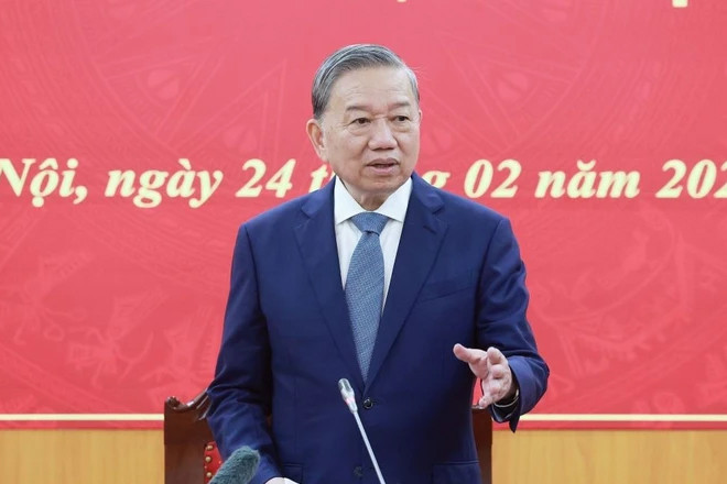Tổng Bí thư Tô Lâm phát biểu chỉ đạo tại buổi làm việc. (Ảnh: Thống Nhất/TTXVN)
