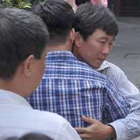 | Nhà báo Hoàng Khương (ngoài cùng, bên phải) bị đề nghị truy tố tội "đưa hối lộ) |