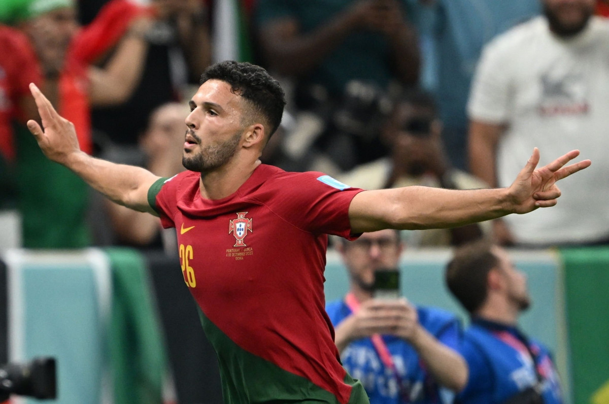 Goncalo Ramos, cầu thủ đá chính thay Cristiano Ronaldo ghi 3 bàn giúp Bồ Đào Nha thắng Thụy Sỹ 6-1.