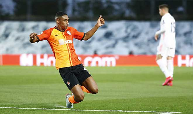 Real Madrid thủng lưới bàn thứ hai sau đó chưa đầy năm phút, từ pha đá phản của Raphael Varane. Cú sốc trong hiệp 1 được bổ sung bằng pha ghi bàn thứ ba của Shakhtar Donetsk trước giờ nghỉ.