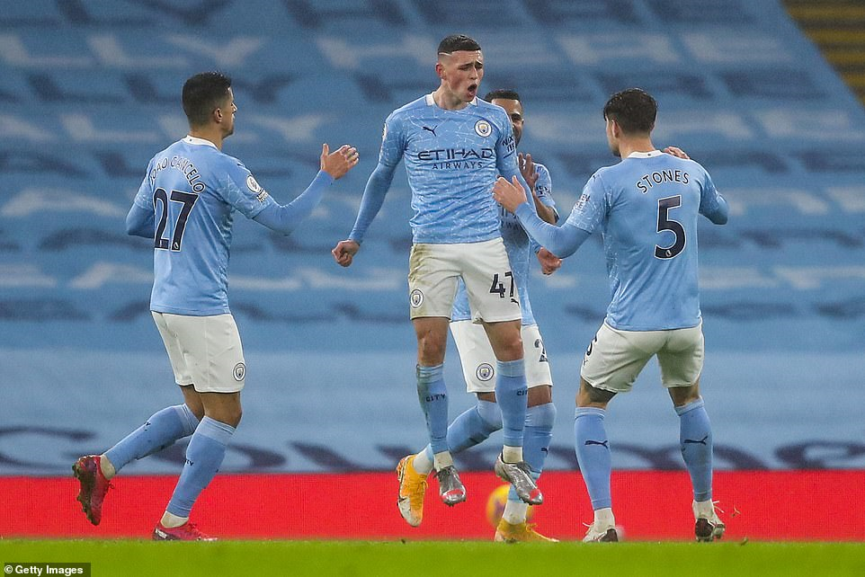 Hàng phòng ngự của đội khách đứng vững gần hết hiệp một. Các học trò của HLV Guardiola phải chờ tới phút 44 mới có bàn mở tỉ số với pha lập công của Phil Foden.