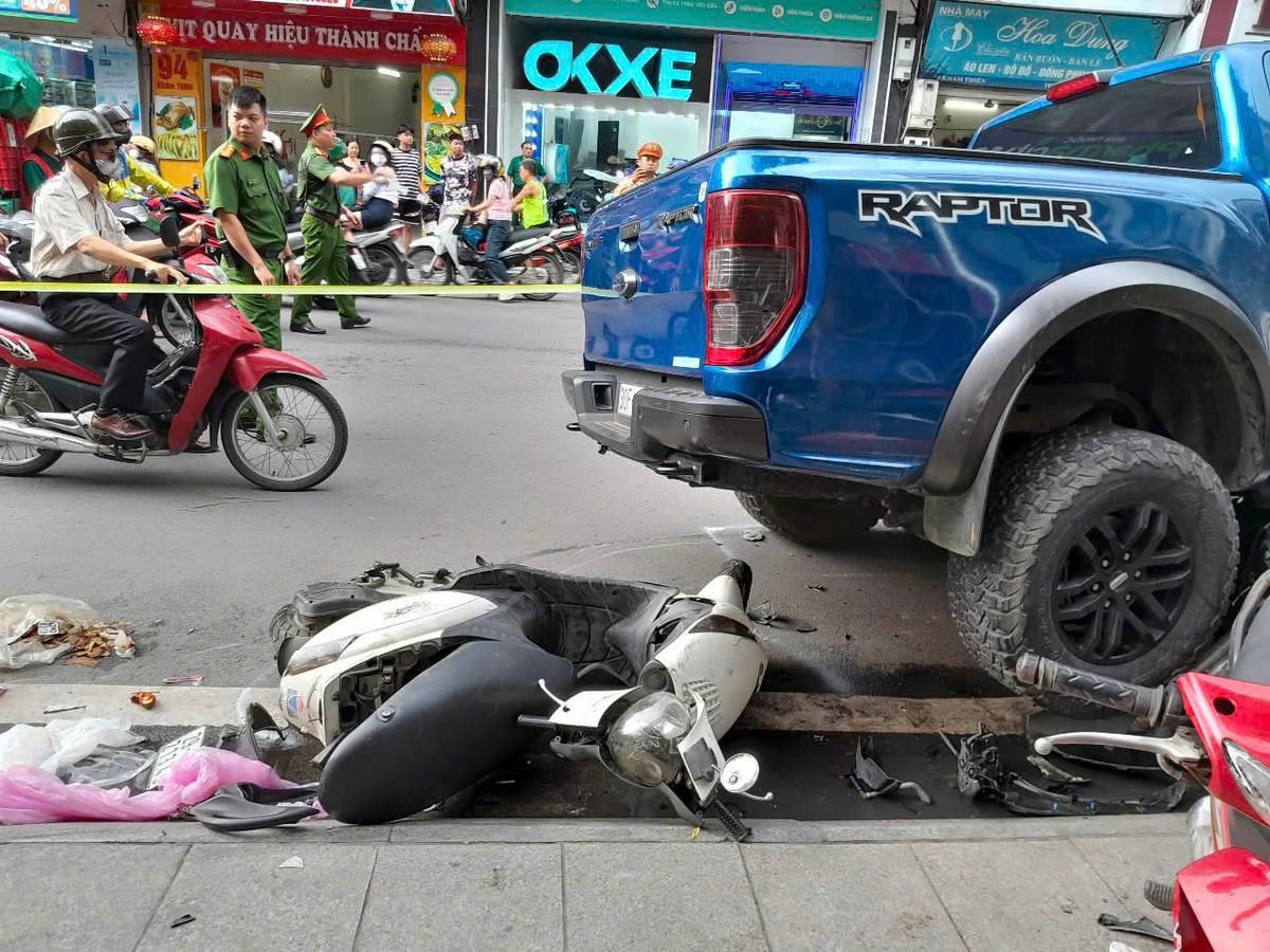 Khoảng 17h cùng ngày, ông N.V.T. (SN 1971, trú tại phố Nguyễn Tuân, Hà Hội) lái xe bán tải đi trên phố Khâm Thiên, phường Văn Miếu - Quốc Tử Giám. Chiếc xe lao nhanh về phía trước, tông 9 xe máy, phần lớn các phương tiện đang dừng đỗ trên vỉa hè.