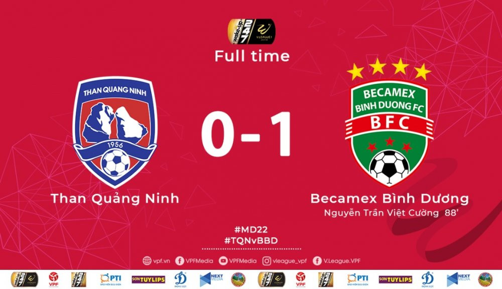Sau khi để Quảng Nam qua mặt bằng chiến thắng trước Sanna Khánh Hòa trong trận đấu sớm, Than Quảng Ninh không thể đòi lại vị trí thứ ba ở cuộc tiếp đón Becamex Bình Dương trên sân nhà. Bàn thắng ở phút 86 của tiền đạo 18 tuổi Nguyễn Trần Việt Cường giúp đội khách giành chiến thắng với tỉ số 1-0.