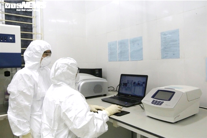 Cán bộ CDC Bắc Giang đang thực hiện các thao tác xét nghiệm.