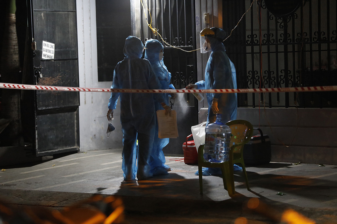 Nhân viên y tế lấy mẫu xét nghiệm tại quận 7 - nơi nữ bệnh nhân mắc COVID-19 sinh sống.