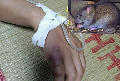 Trước khi vào viện khoảng 20 ngày, người này bị chuột cắn vào mu bàn tay phải, sau đó sưng tấy đỏ, đau nhức tại vết cắn. Do chủ quan không đi khám, khoảng 2 tuần sau, bệnh nhân thấy nổi nhiều hạch ở cánh tay, nách, cổ, sưng đau kèm sốt nóng, mệt mỏi, ăn ngủ kém.