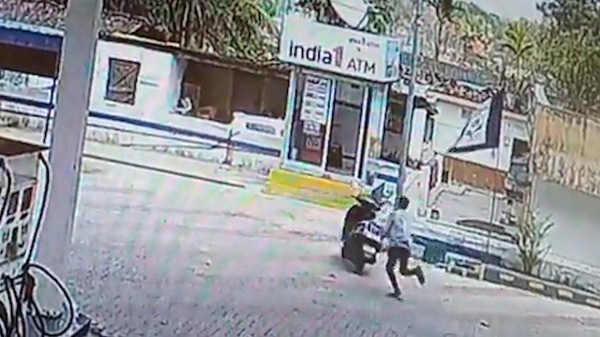 Người đàn ông khởi động xe máy, đột nhiên dây ga bị kẹt khiến chiếc xe lao thẳng vào máy ATM tại Chattisgarh, Ấn Độ.