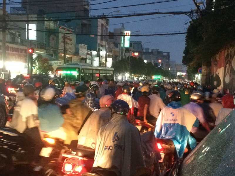 Khoảng 17h20, ngã tư Hòa Bình – Tô Hiệu có mưa, nhiều người tranh thủ lưu thông thông, mạnh ai nấy đi, không ai chịu nhường đường ai. Tiếp đó đúng giờ tan học của học sinh, sinh viên ra về, lượng xe buýt, ô tô, xe tải và xe gắn máy càng lúc càng đông khiến tình hình giao thông càng thêm kẹt cứng.